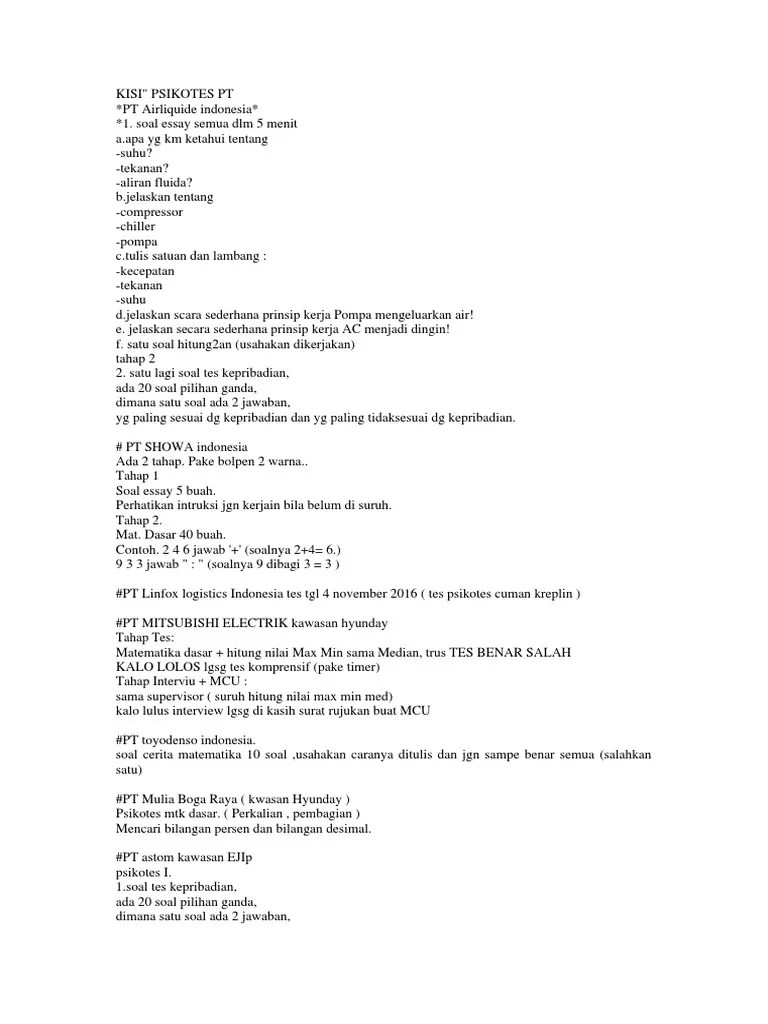 Contoh soal psikotest dan tips menghadapi tes psikotestpdf. Tes psikotes tiu 5 dan jawabannya pdf matematika huruf kutipan . Yuk cek contoh soal psikotes kai pdf. Contoh soal psikotes polri dan jawabannya pdf download. Karena railink sendiri adalah anak perusahaan dari pt kai. Contoh soal psikotes soal cerita . Bank cimb niaga, bank bni, bank syariah berdikari, kereta api indonesia, pertamina, . 10/12/2017contoh soal psikotes dan kunci jawaban terbaru | lowongan. Pemberitahuan penundaan pengumuman lulus seleksi administrasi rekrutmen eksternal tingkat slta, d3 dan s1 pemenuhan kebutuhan pekerja pt kereta . Tes psikotes tiu 5 dan jawabannya pdf matematika belajar huruf. Ampuh cara lulus di ptkai dan pengalaman tes ptkai 2017 kaskus. Tes perangkat desa dan kunci jawaban pdf, tes alfamart dan jawabannya, pt adhikarsa indonesia subang, digadag com, kunci.informasi yang anda cari adalah contoh . Lowongan kerja pt kereta api indonesia commuter lineâ.